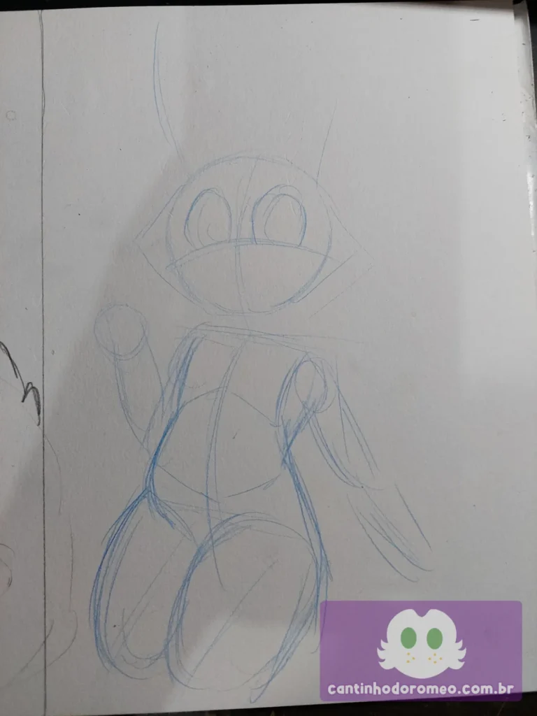 Comecei o desenho como sempre: Com as primeiras linhas da pose. Eu iria fazer o Romeo acenando e com o outro braço estendido. Eu gostei dessa ideia, e decidi seguir adiante. Assim, fiz o esboço do desenho.
