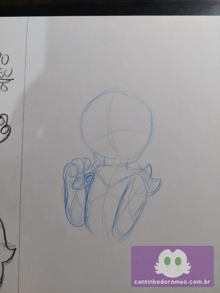 Depois, fui para o esboço, onde fiz o tronco, ombros, braços e a pata. E que eu gostei bastante de como ficou.