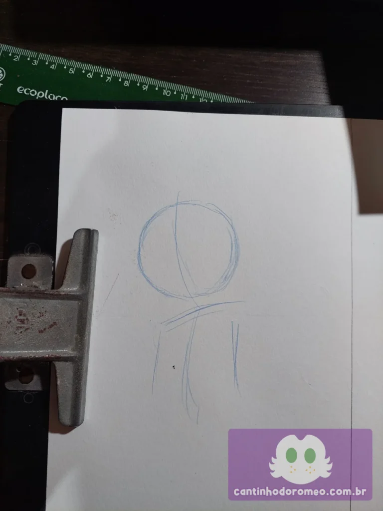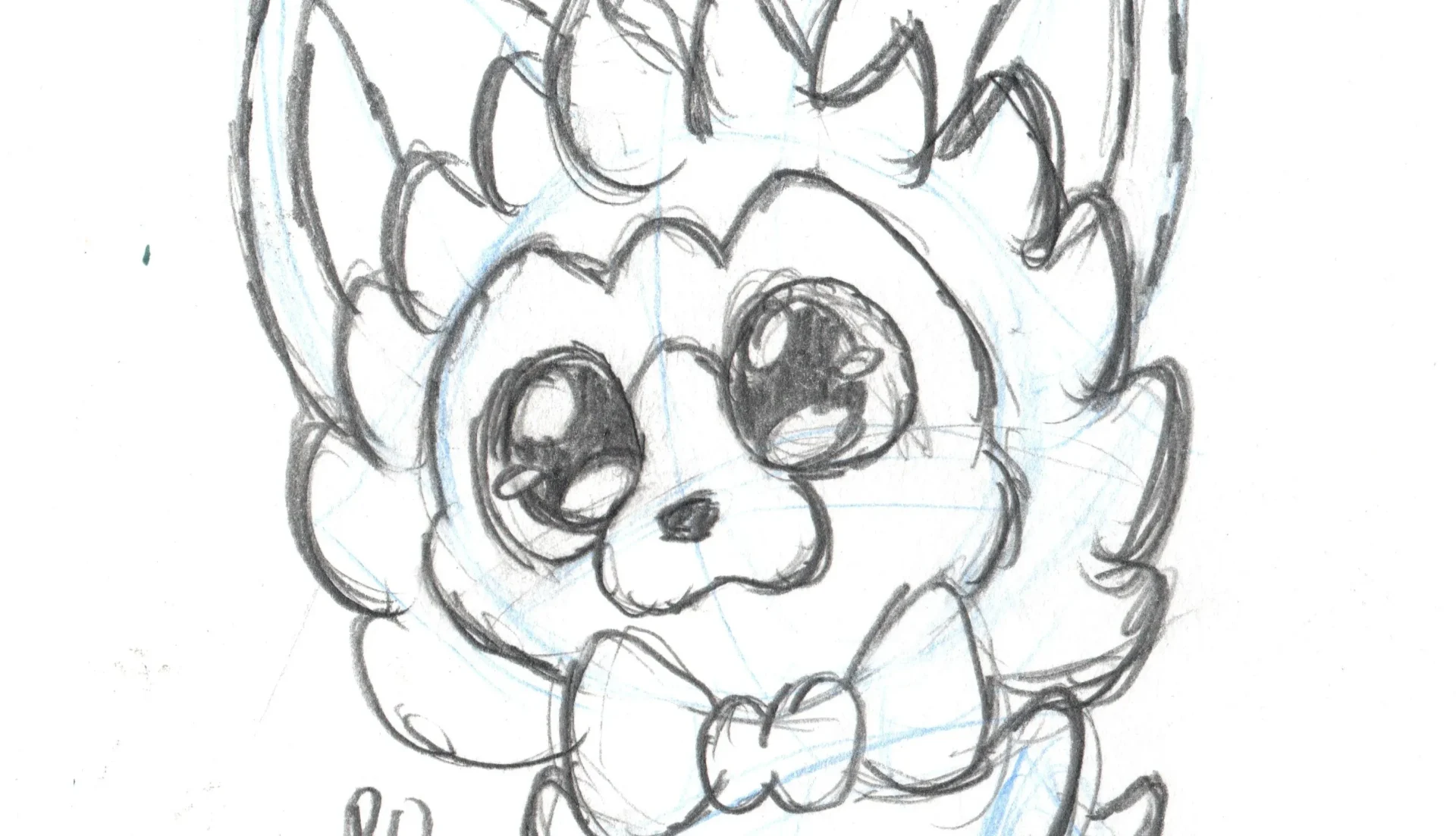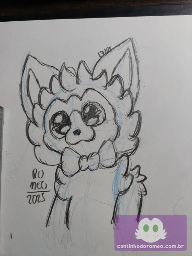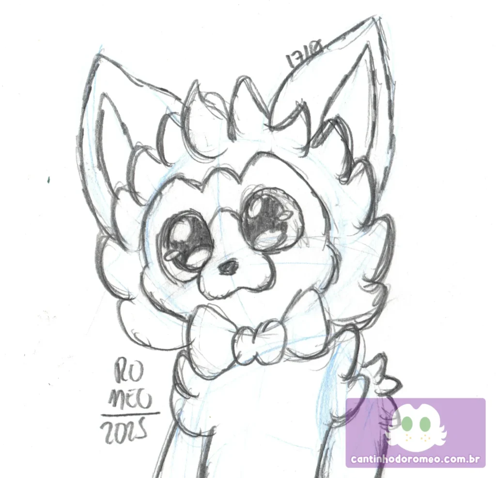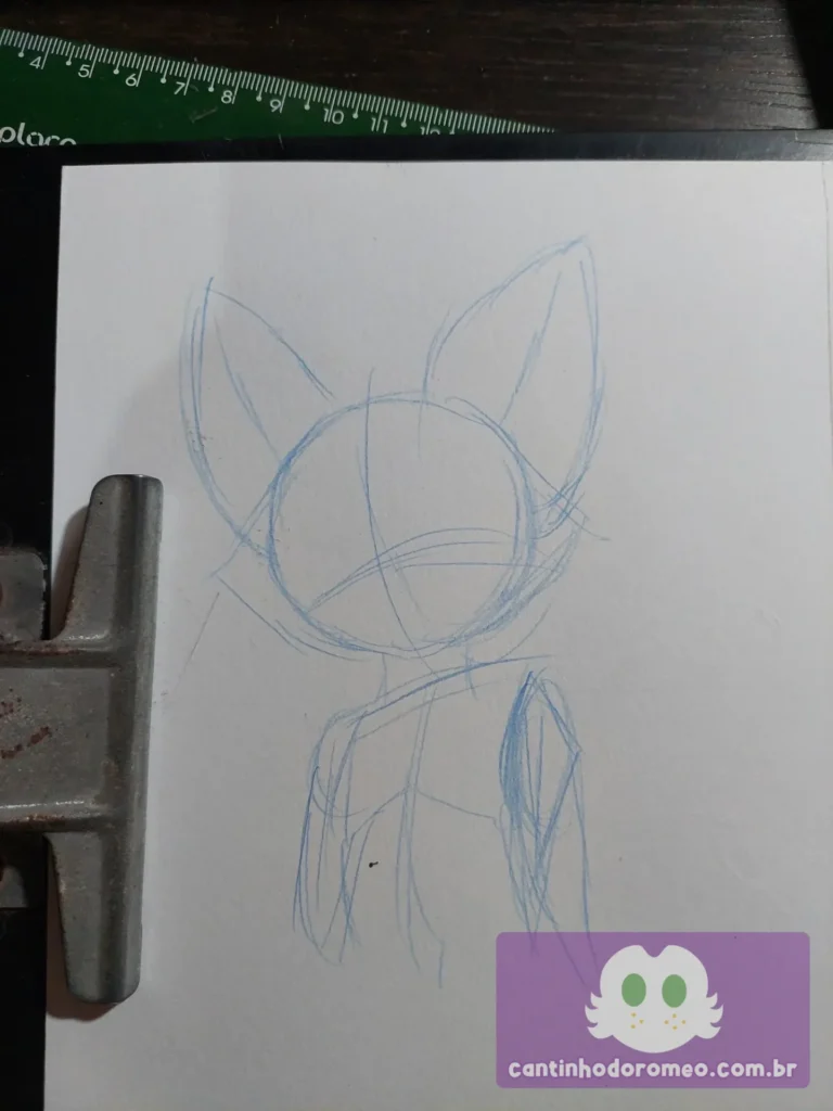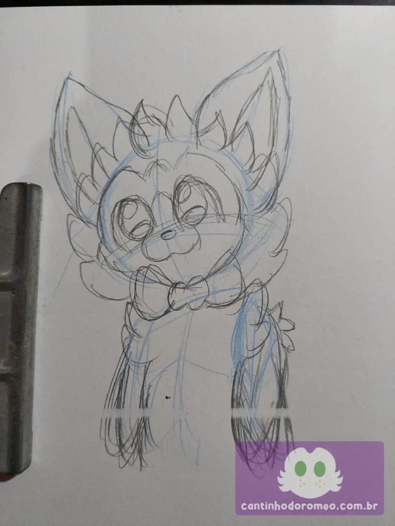 Comecei esse desenho como sempre: Com as primeiras linhas da pose dele. Depois, fiz as orelhas e o tronco dele. E gostei bastante de como estava ficando.