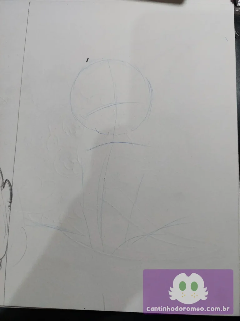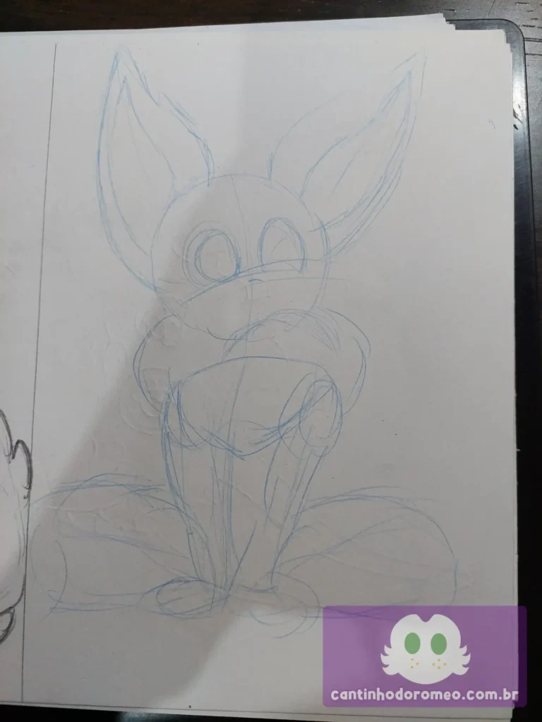 Assim, avancei mais no desenho. Fiz as sardas, reforcei os traços do desenho e apaguei os traços em excesso e por fim, fiz a cauda dele.