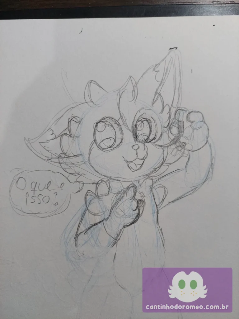Eu gostei muito mais dessa ideia, e assim prossegui. Apaguei os traços em excesso e reforcei os principais, pintei as pupilas dos olhos e fiz o visco do Mocha. E assim, finalizei esse desenho.
